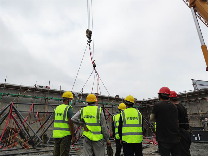 5、球形网架安装时应先在柱顶弹出轴线 ,认真测量对角线尺寸,对个网格和排网架做的的测量和校正。